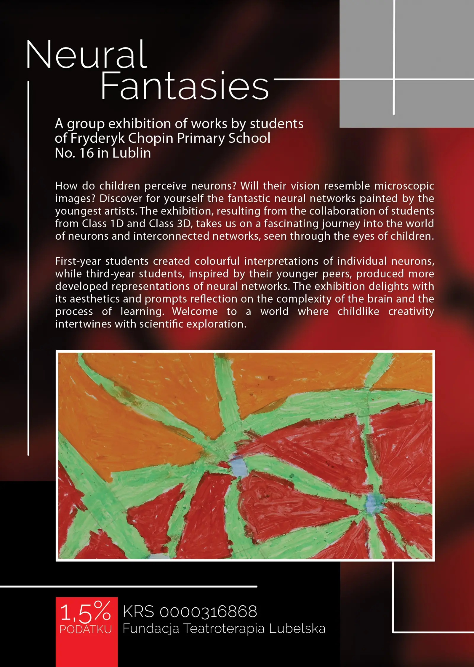 On the occasion of this year’s Night of Culture, which coincides with Children’s Day, we invite you to a remarkable group exhibition of works by students of Fryderyk Chopin Primary School No. 16 in Lublin, entitled Neural Fantasies. Explore the exhibition at the Art Brut Gallery in the Centre for Culture in Lublin.