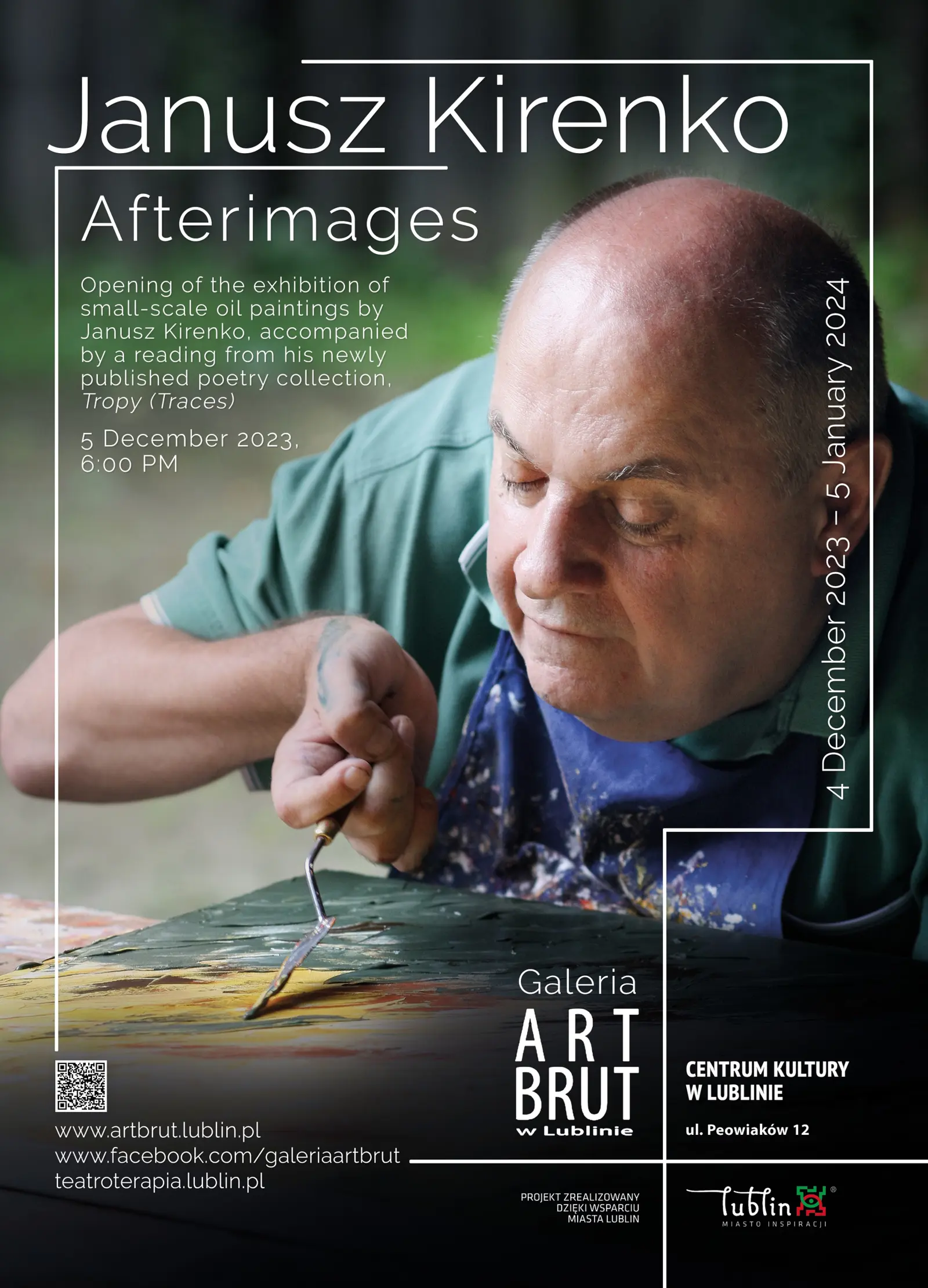 The exhibition of small-scale oil paintings, Afterimages, opened on 5 December 2023, accompanied by a reading from the artist’s newly published poetry collection, "Tropy" (Traces). Visitors were able to admire 32 miniatures in the spirit of Stanisławski’s landscapes while listening to excerpts from Kirenko’s latest poetry.