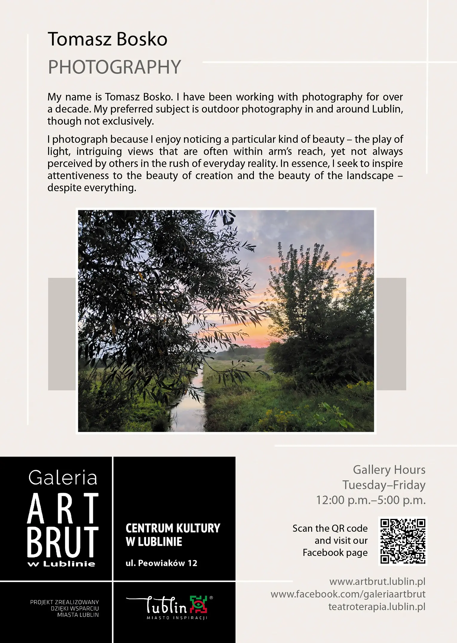 My name is Tomasz Bosko. I have been working with photography for over a decade. My preferred subject is outdoor photography in and around Lublin, though not exclusively.