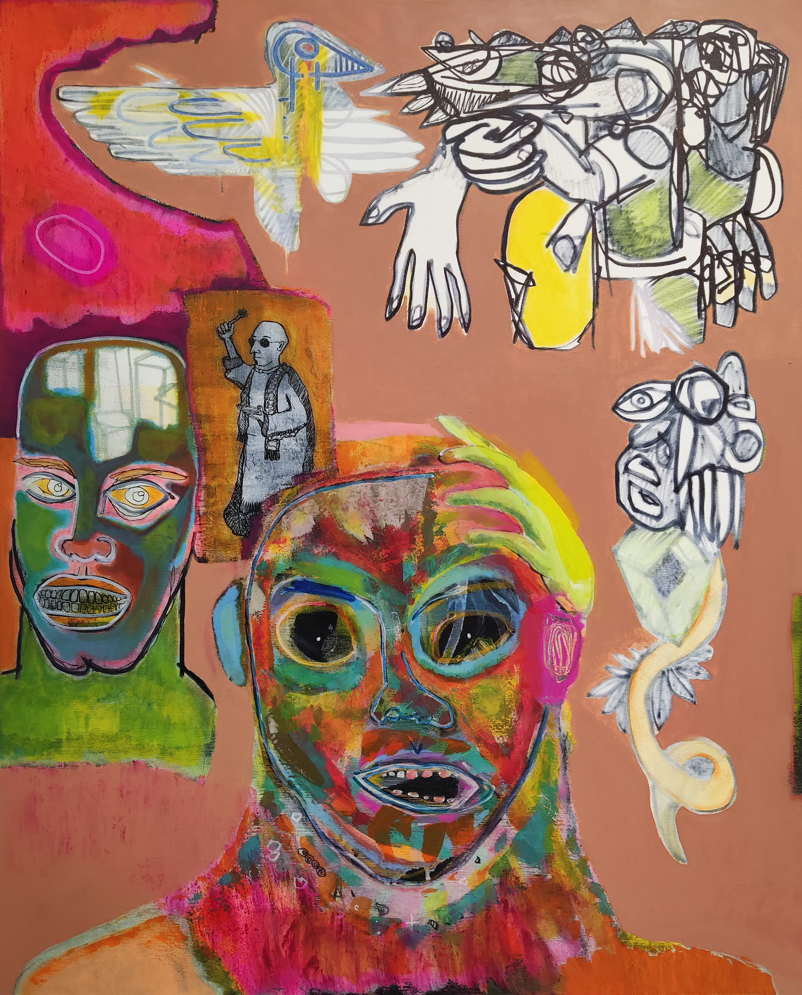 W 2025 roku – 12 czerwca dostaliśmy "pancernie" zapakowaną przesyłkę z kolejnymi obrazami dużego formatu, a na początku lipca następną. Bez adresu zwrotnego, nazwiska nadawcy… W paczce znaleźliśmy krótką wiadomość: „wysyłam i darowuję obrazy do Galerii w Lublinie, bo prowadzicie świetną działalność. Możecie zrobić z nimi, co chcecie. Wysyłam obrazy, bo niszczę je/palę/zamalowuję po to, aby demony odeszły, opuściły mnie....”