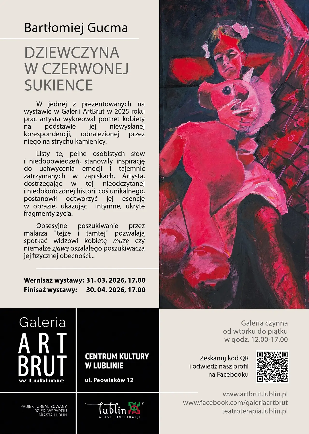 W kwietniu w Galerii ArtBrut wystawa malarstwa Bartłomieja Gucmy pt. "Dziewczyna w czerwonej sukience".